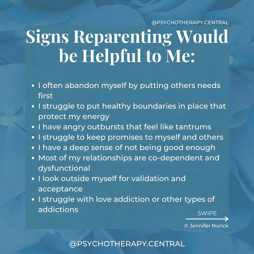 Reparenting is, by far, one of the most powerful things I have ever done for myself. By growing the adult part of myself, I completely changed my life. I felt safer with myself than ever before, more present, kinder to myself and more grounded, which enabled me to put boundaries in place in a more effective way, be more assertive, have better relationships. Know that EVERYONE can learn reparenting skills. It might be the missing piece of the puzzle for you.