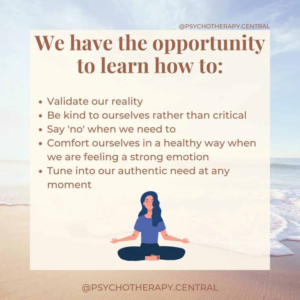 Reparenting is, by far, one of the most powerful things I have ever done for myself. By growing the adult part of myself, I completely changed my life. I felt safer with myself than ever before, more present, kinder to myself and more grounded, which enabled me to put boundaries more effectively, be more assertive, and have better relationships. Know that EVERYONE can learn reparenting skills. It might be the missing piece of the puzzle for you.