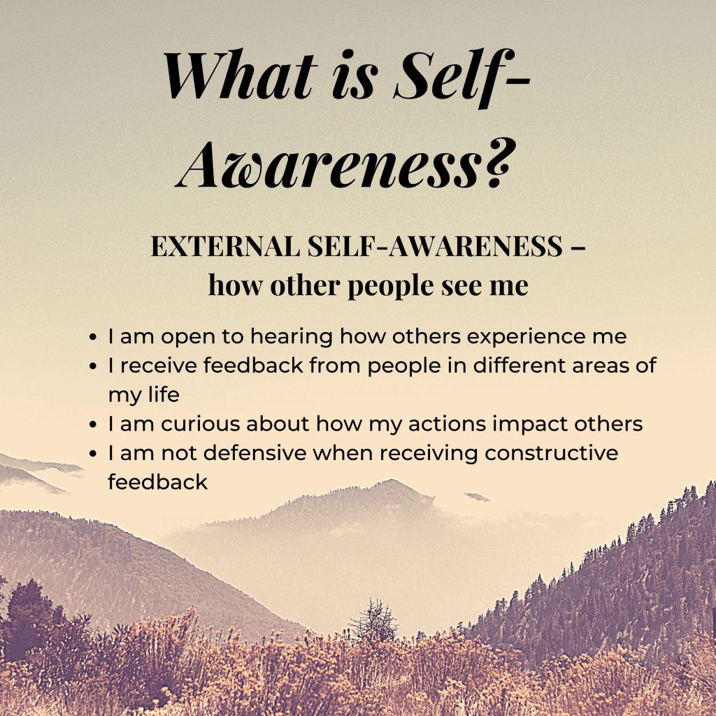 Dr. Tasha Eurich (2019) in her research, differentiates between internal and external self-awareness.