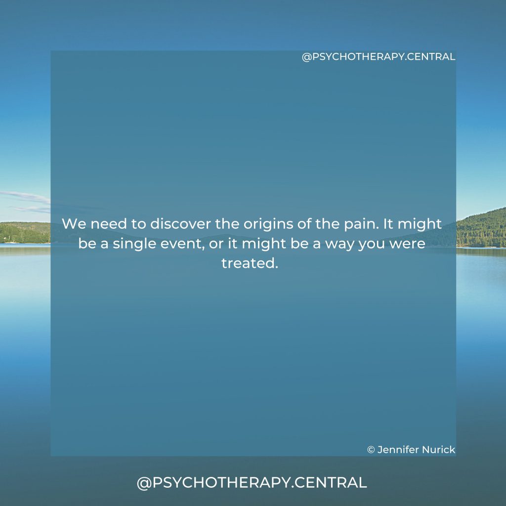 We need to discover the origins of the pain. It might be a single event, or it might be a way you were treated.
