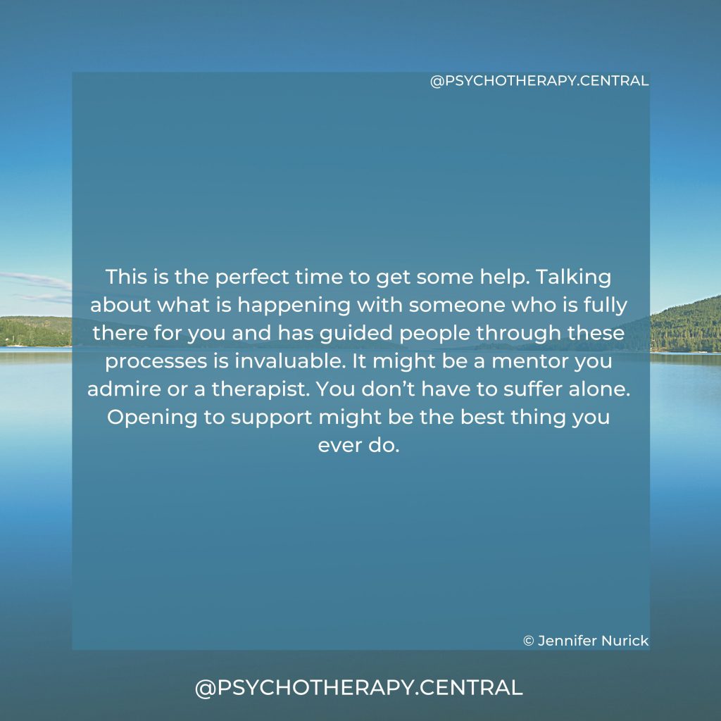 This is the perfect time to get some help. Talking about what is happening with someone who is fully there for you and has guided people through these processes is invaluable. It might be a mentor you admire or a therapist. You don’t have to suffer alone. Opening to support might be the best thing you ever do.