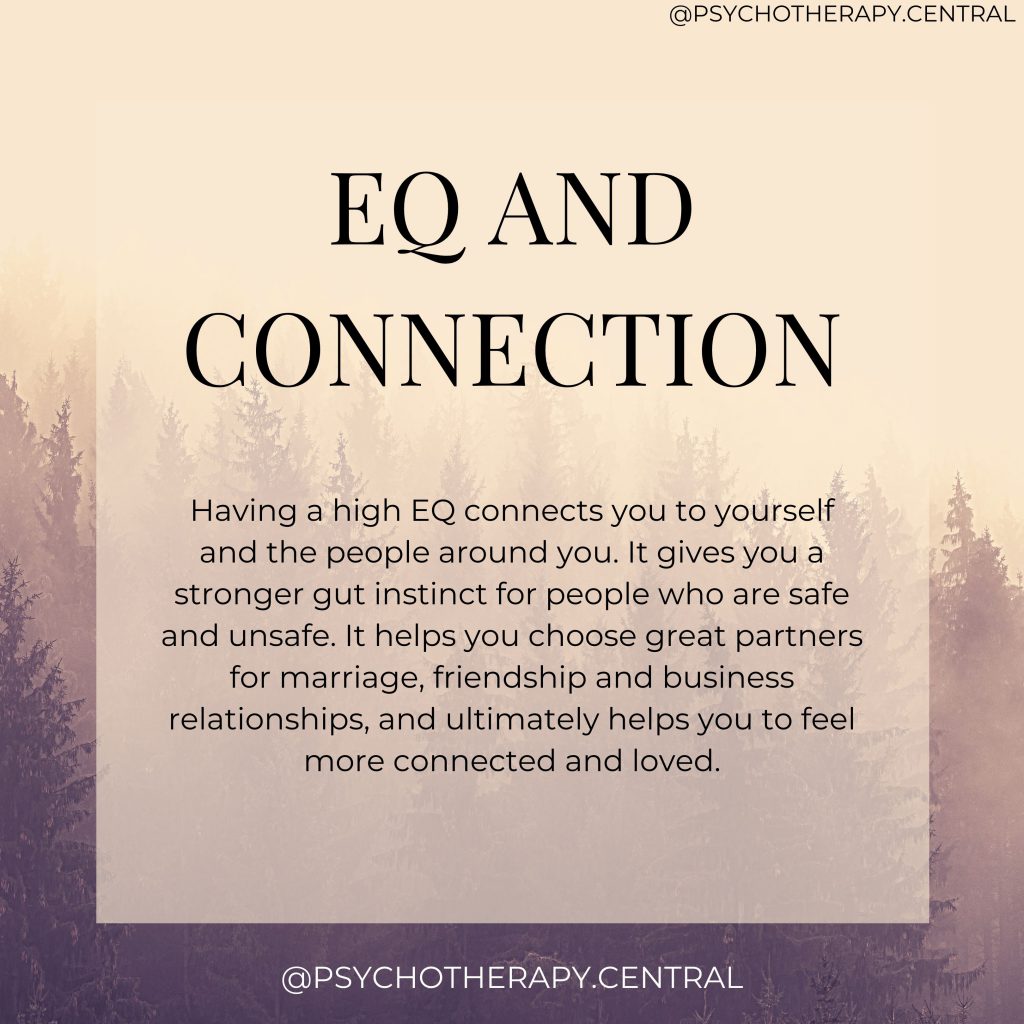 Having a high EQ, means we have a greater capacity for empathy. Empathy helps us to connect with other people, to feel genuine compassion for their struggles. Empathy is something that helps us to form connections and to stay connected, it helps us be attuned to group emotions and undercurrents and respond accordingly. The best leaders have a strong dose of empathy.