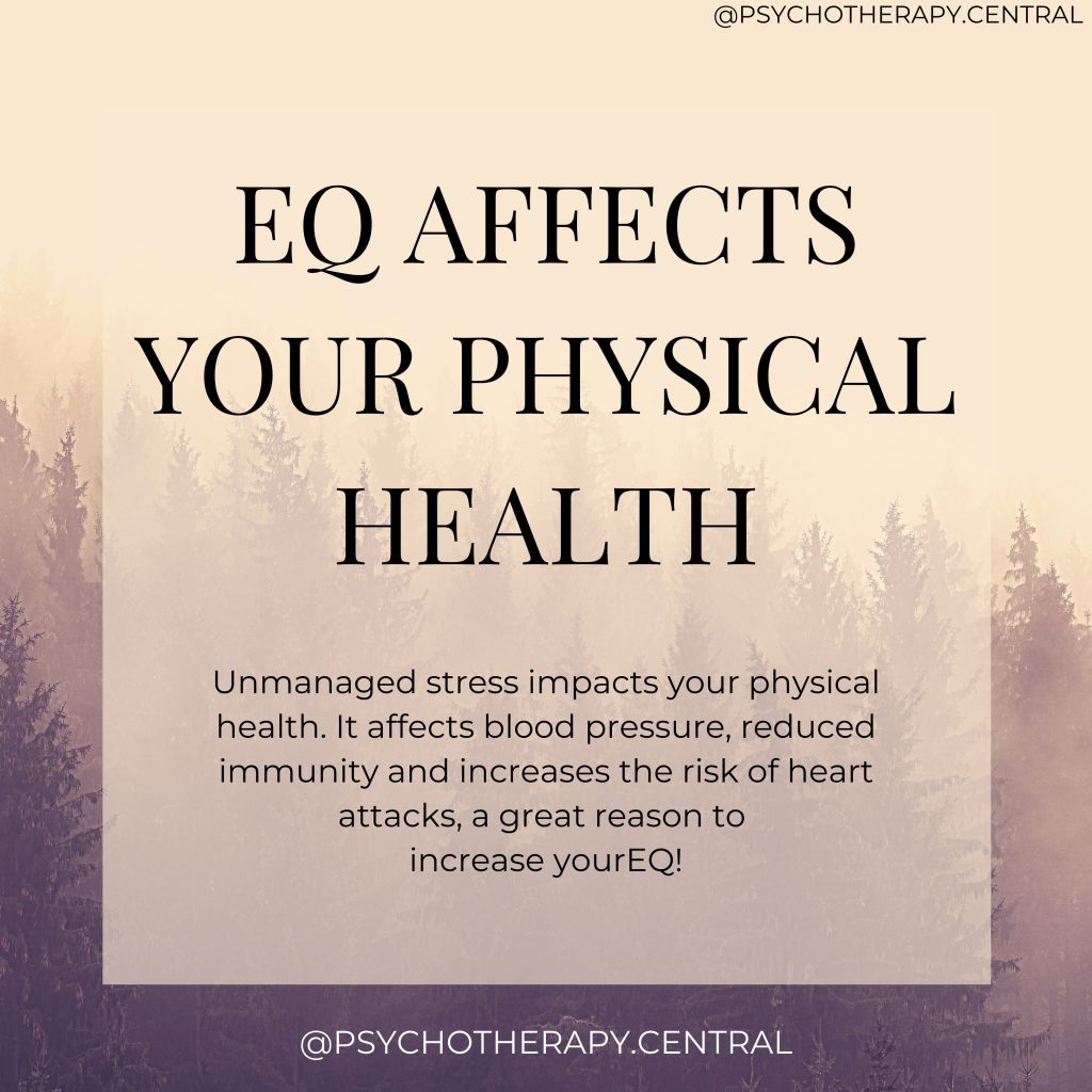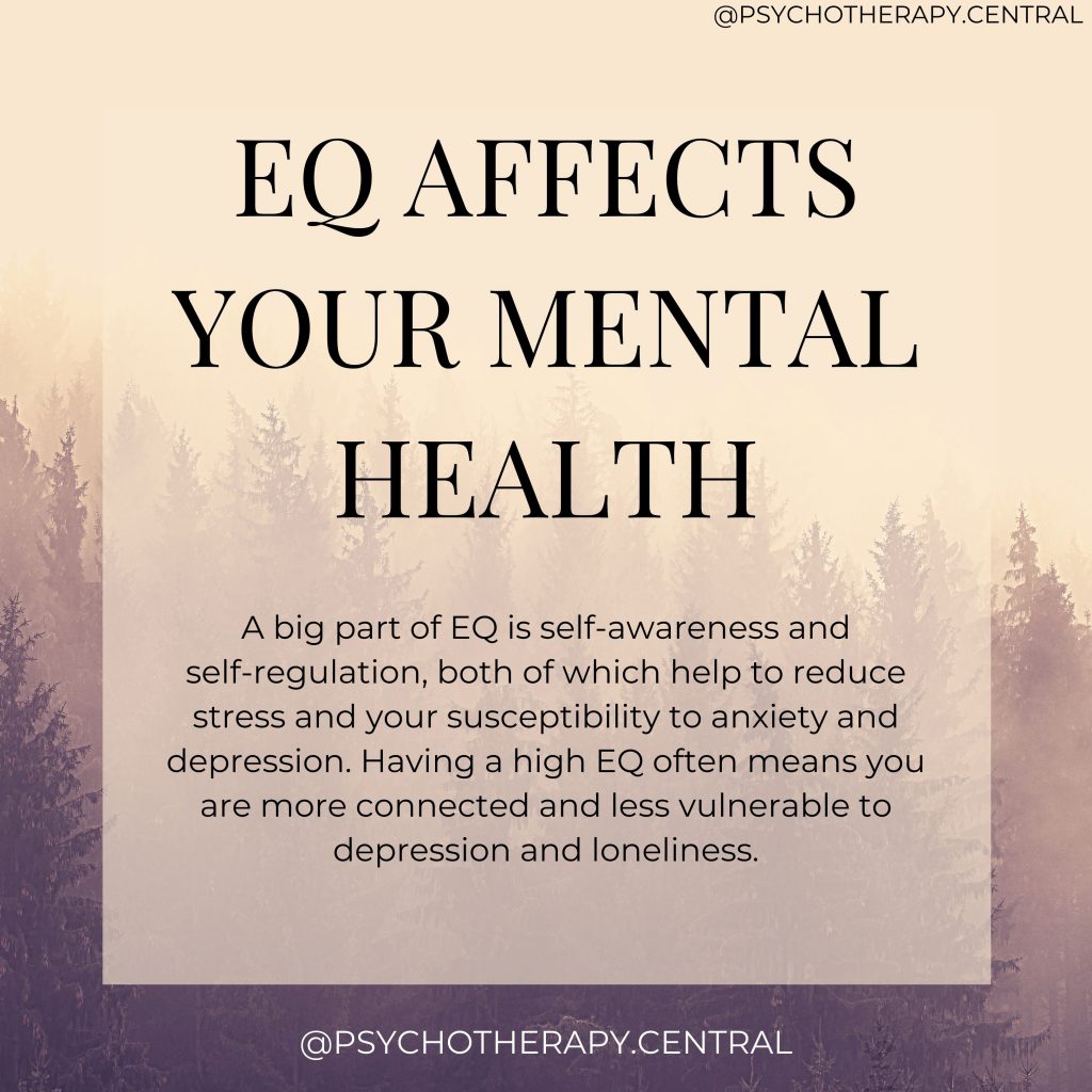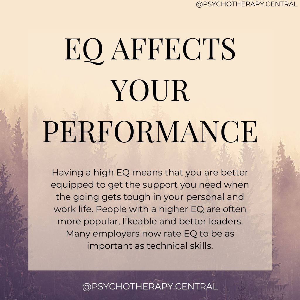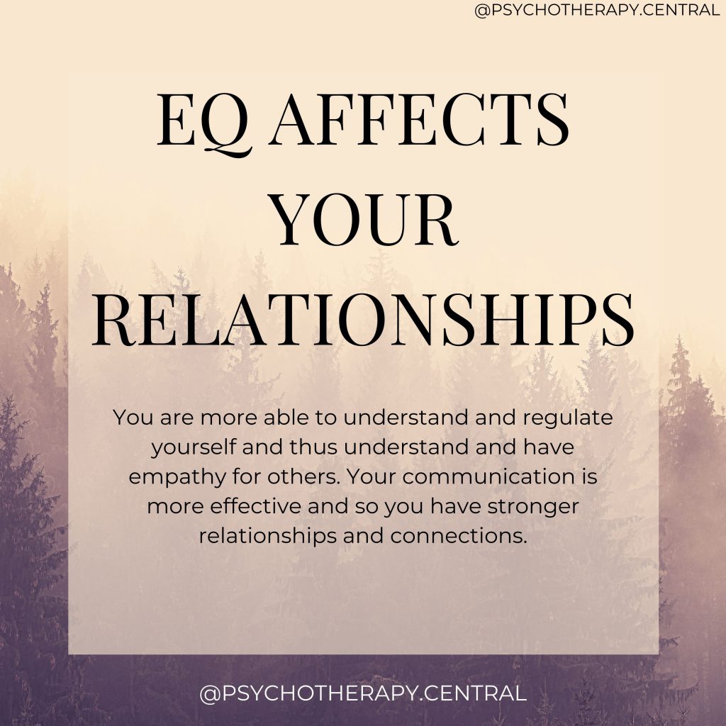 So, why is your emotional quotient so important? Your EQ affects both your inner and outer experience of life in a profound way. When we have a high EQ, our self-awareness and ability to self-regulate are high. This keeps stress at bay and helps us to genuinely like ourselves, increasing our self-esteem.