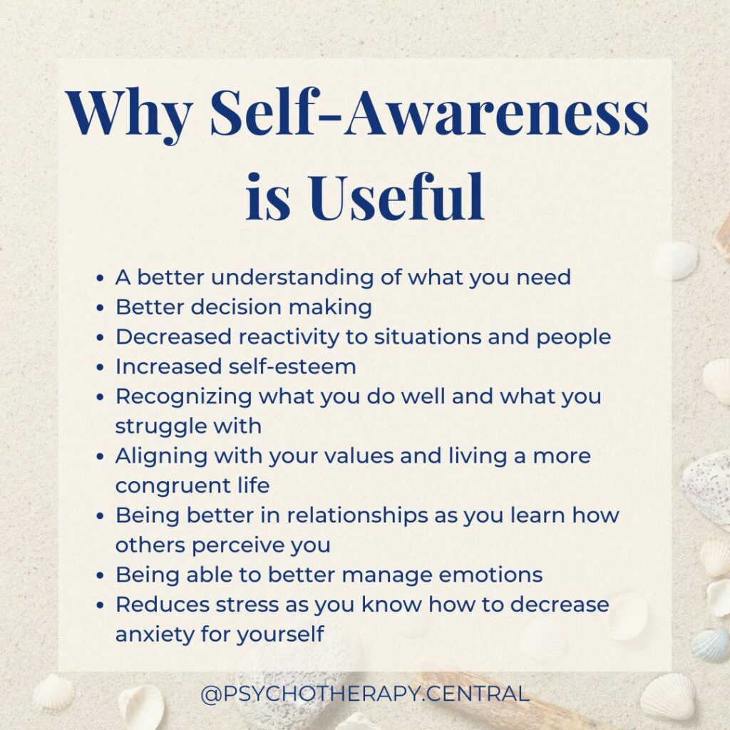It makes sense that the more we know ourselves, the more we will know our needs and get our needs met. We will make better decisions for ourselves, and in the long run, our self-esteem will increase.